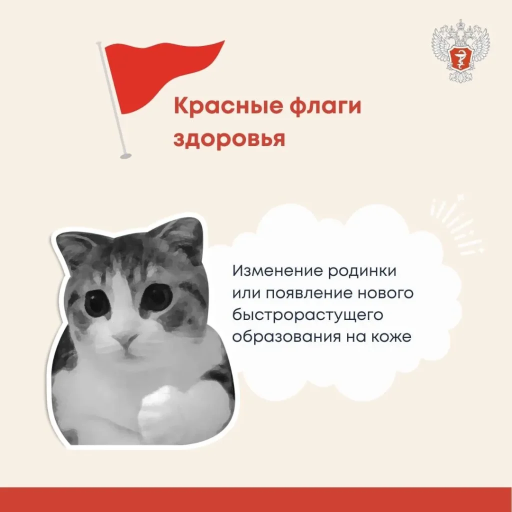 Изменение родинки (асимметрия, неровные края, рост, изменение цвета). Это классические признаки риска меланомы.